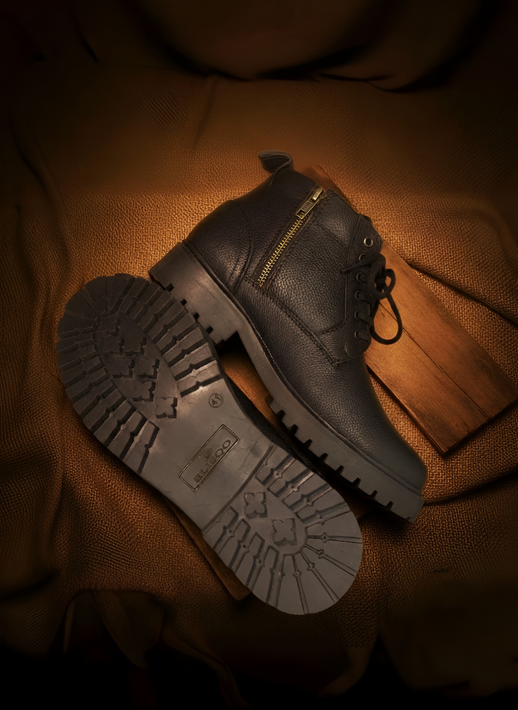The Fortis by ELISQO. Premium black pebbled leather men's ankle boot with dual lace-up and gold-zip closure, chukka silhouette, and heavy-duty lug sole. Built to last, built to lead.